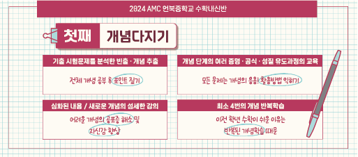 내신에 최적화된 최강 커리큘럼을 통하여, AMC의 성적향상 프로그램을 경험하시기 바랍니다.