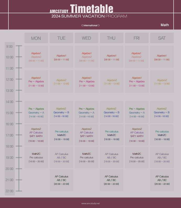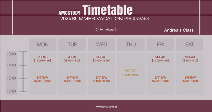 2024년 Summer Vacation Program은 특징은 우리학생들의 GPA와 SSAT, Amc8의 고득점을 목표