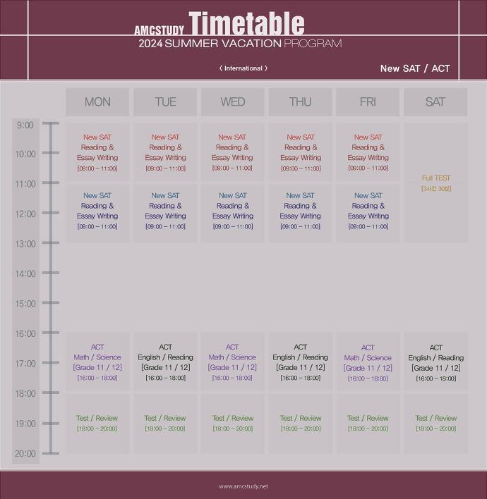 로 구성되어 있으며학생들이 방학기간 동안 집중적으로 시험에 대비할 수 있도록 많은 과목 개설은 물론이