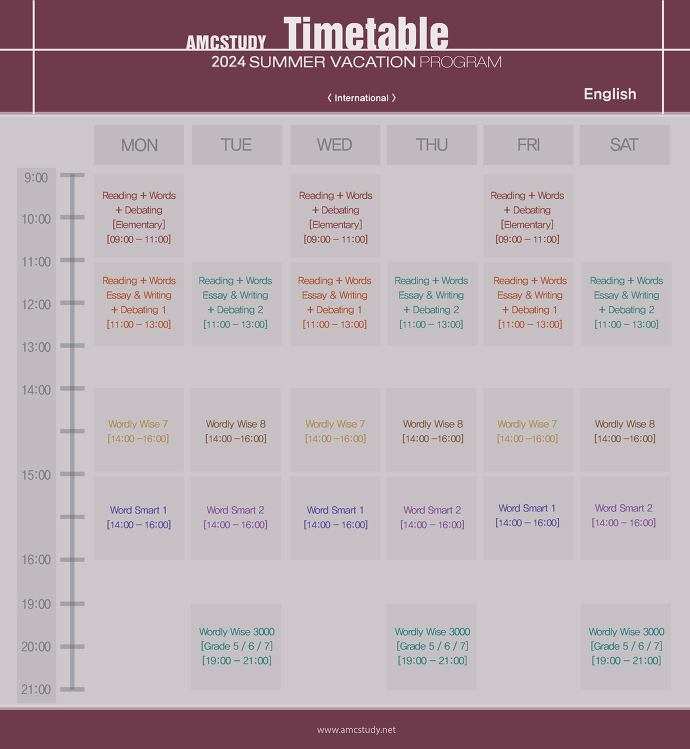 2024년 여름방학을 위해 AMC학원에서다음과 같이 Summer Intensive Class를 안내해 드리오니