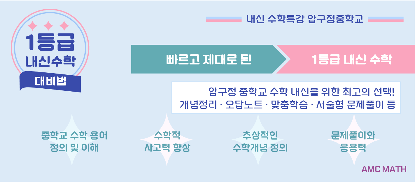 서 이전대비 압구정중수학내신 준비과정과 특강에 대한 문의가 늘어나고 있습니다. 진단평가와