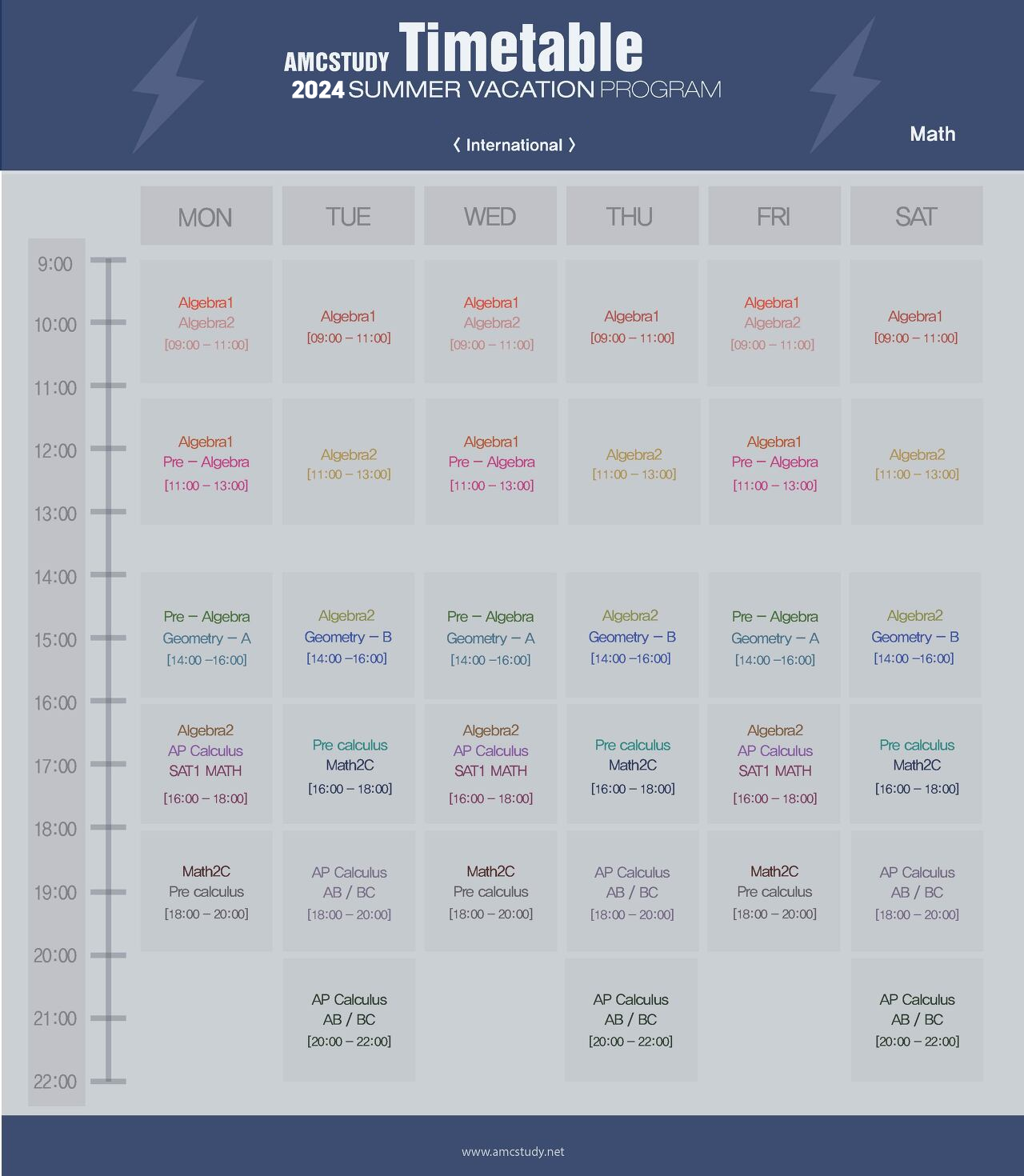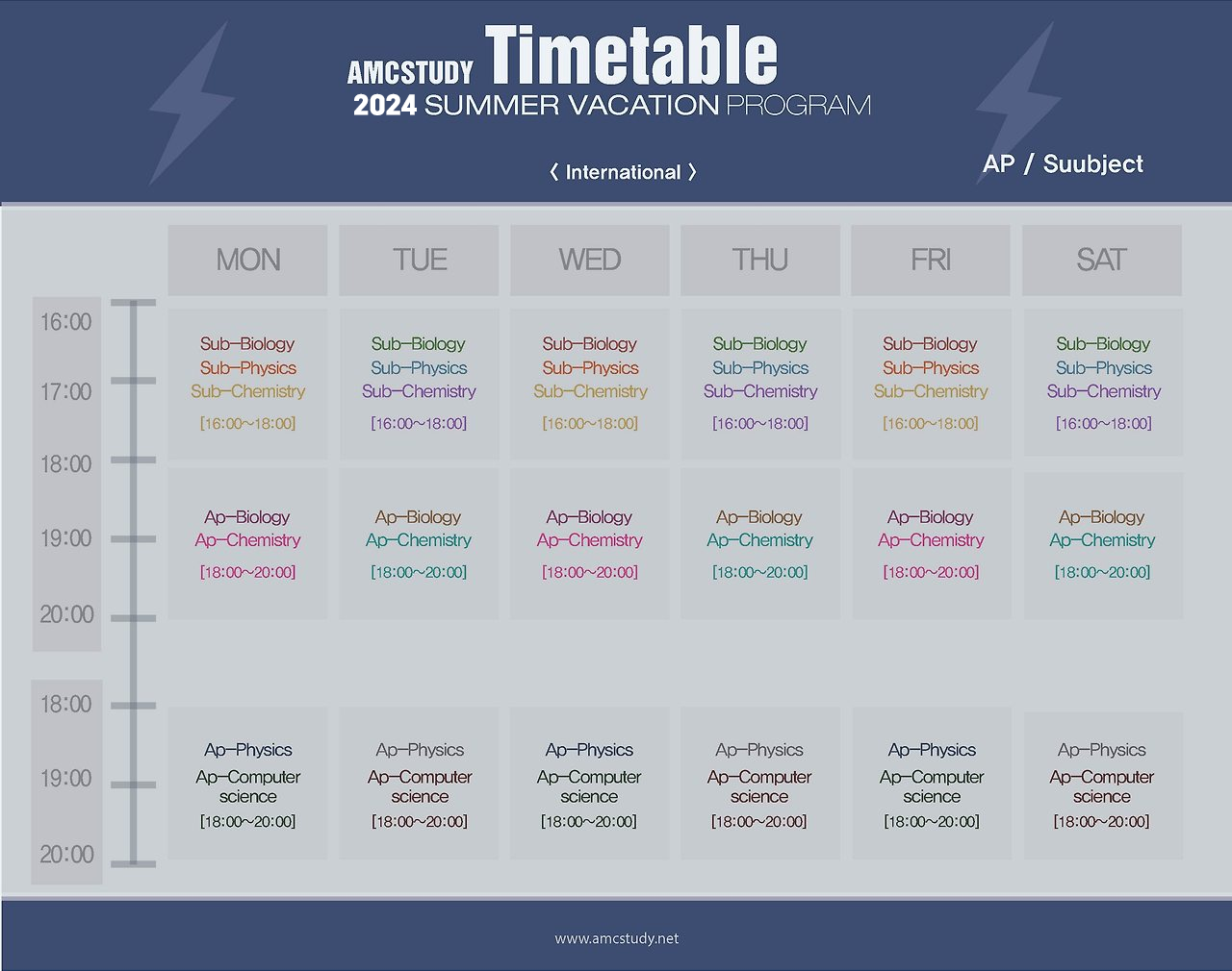 시간표에서 보이는 것과 같이 amc는 학생들에게 필요한 과목들을 체계적으로 나누어 수업합니다.