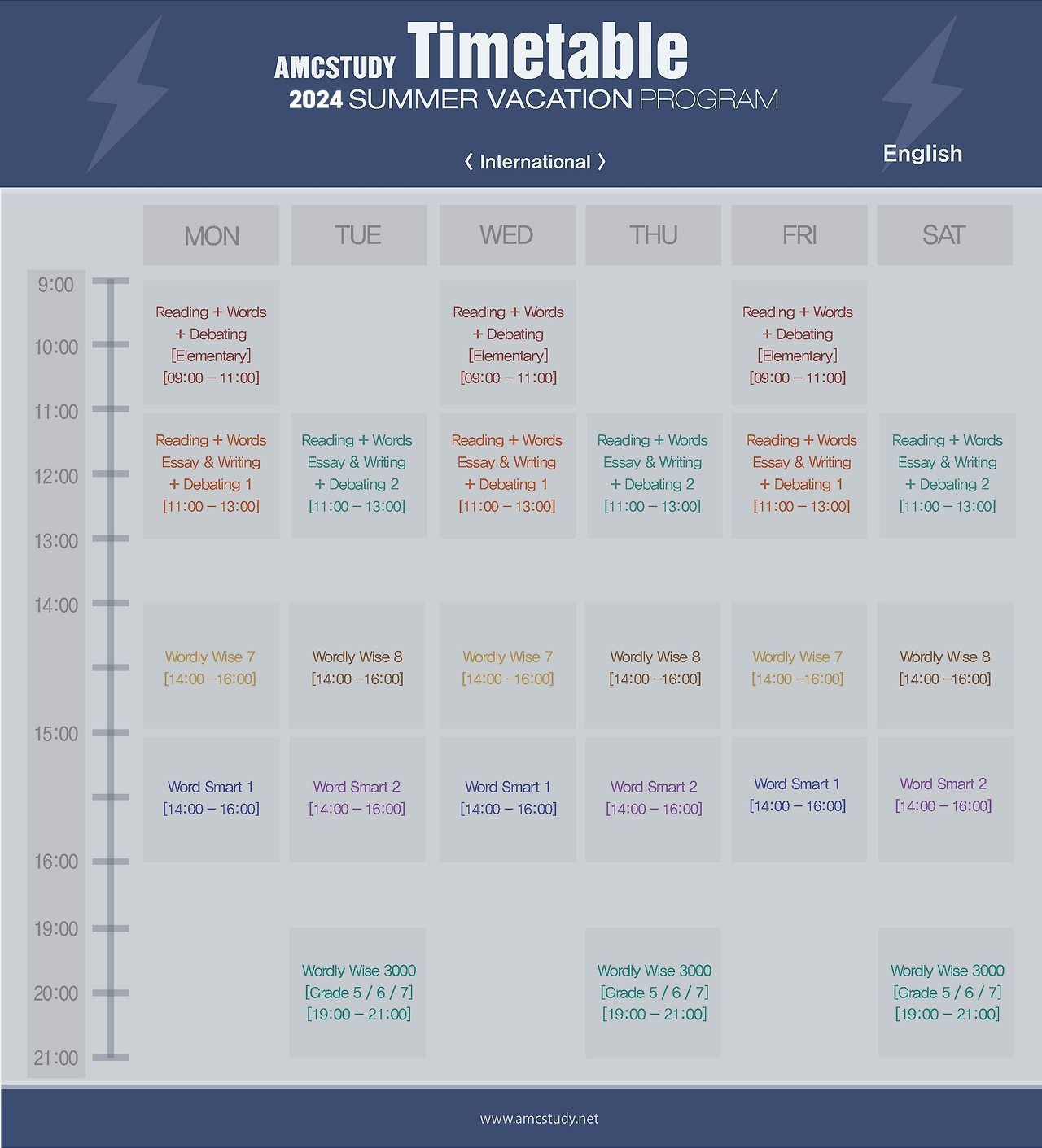 하단에서 여름방학 시간표를 확인하시고 필요하신 수업을 선택하셔서 저희 amc와 함께 시험