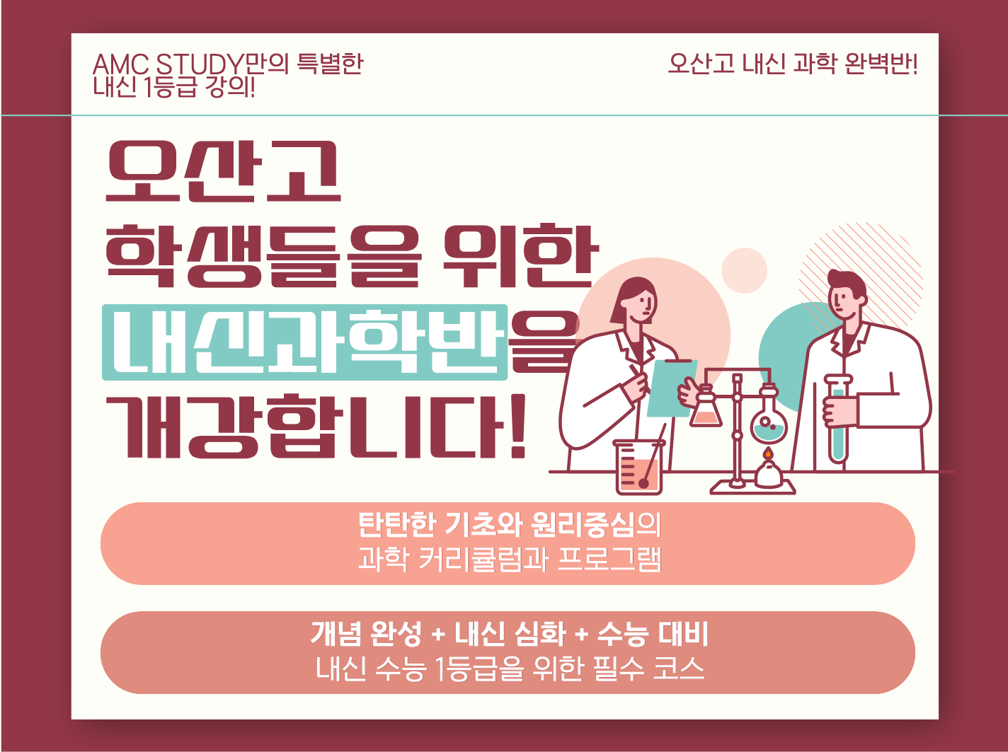 오늘은 1등급 내신과학을 위한 오산고등학교 만의 내신과학반 안내를 도와드겠습니다.