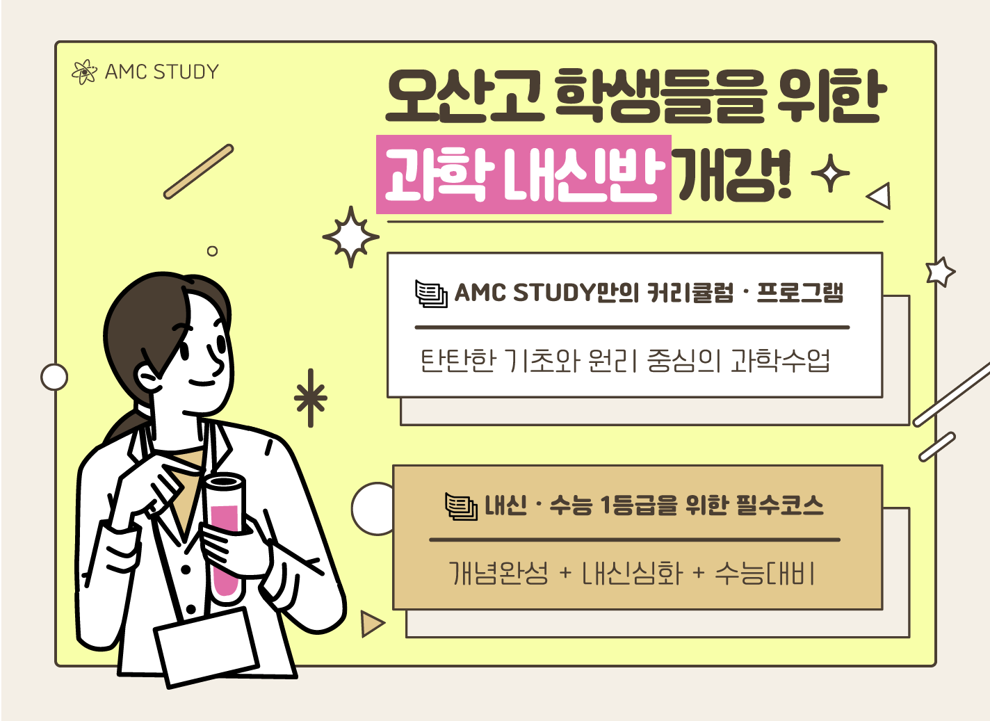 에이엠씨학원 입니다. 오늘은 오산고 학생들을 위한 내신과학 특강반에 대해서 안내를 드