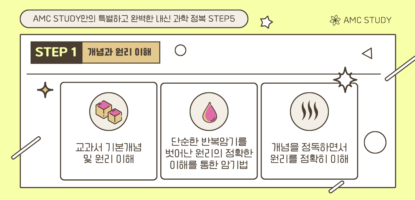 AMC학원 만의 완벽한 내신정복의 5단계는 과학공부의 개념정리와 이해과목의 정리에 있어서