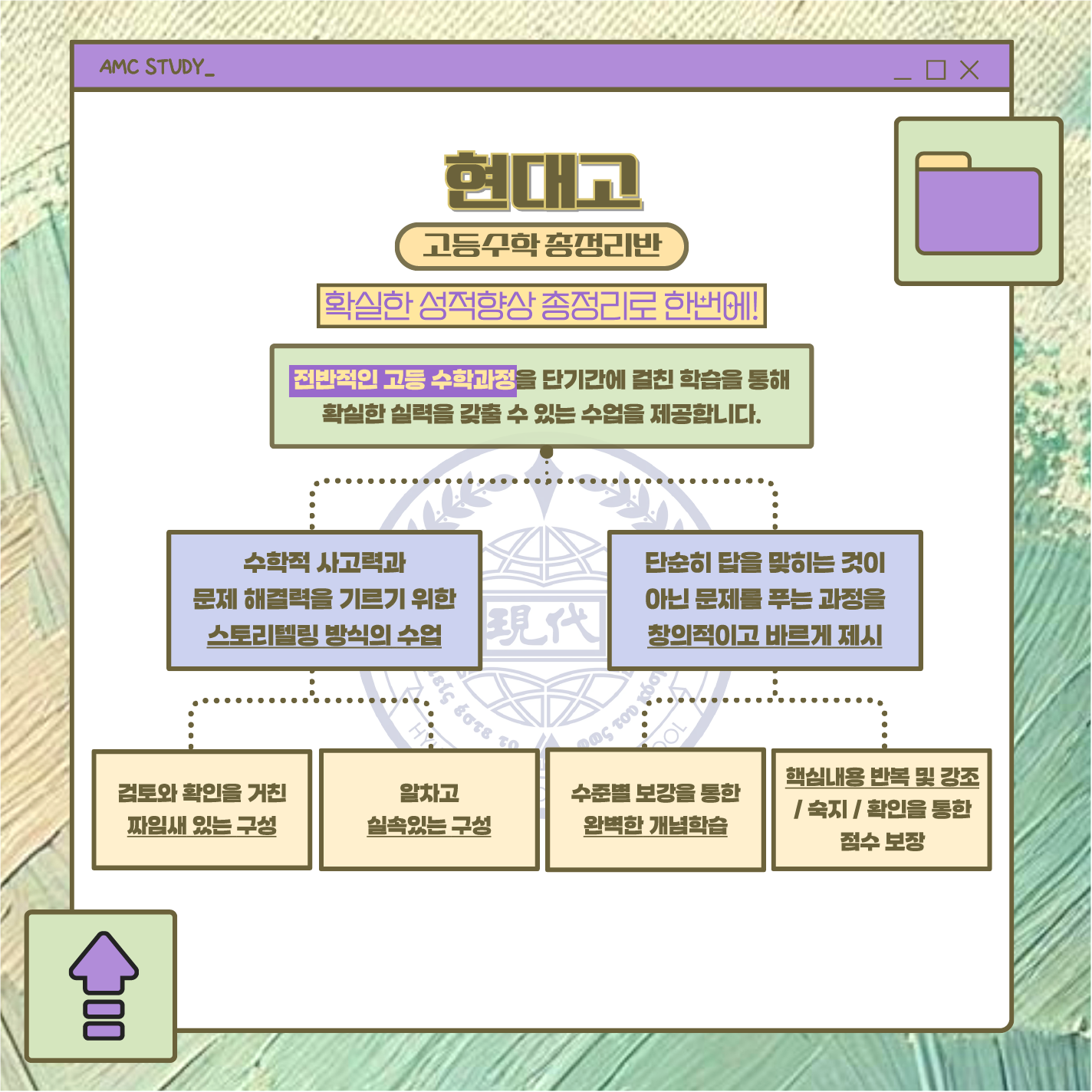 움의 배가를 통하여 확실한 수학실력의 향상을 도모해 드리고 자 합니다. 지금껏 현대고학생들의 내신