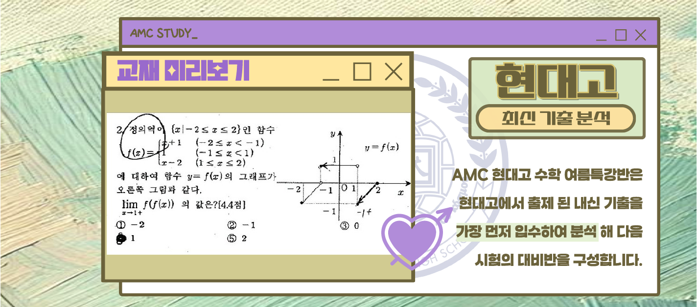 amc학원은 현대고에서 출제된 내신문제를 바로 입수하여 출제 경향과 의도, 다음 학기 출제