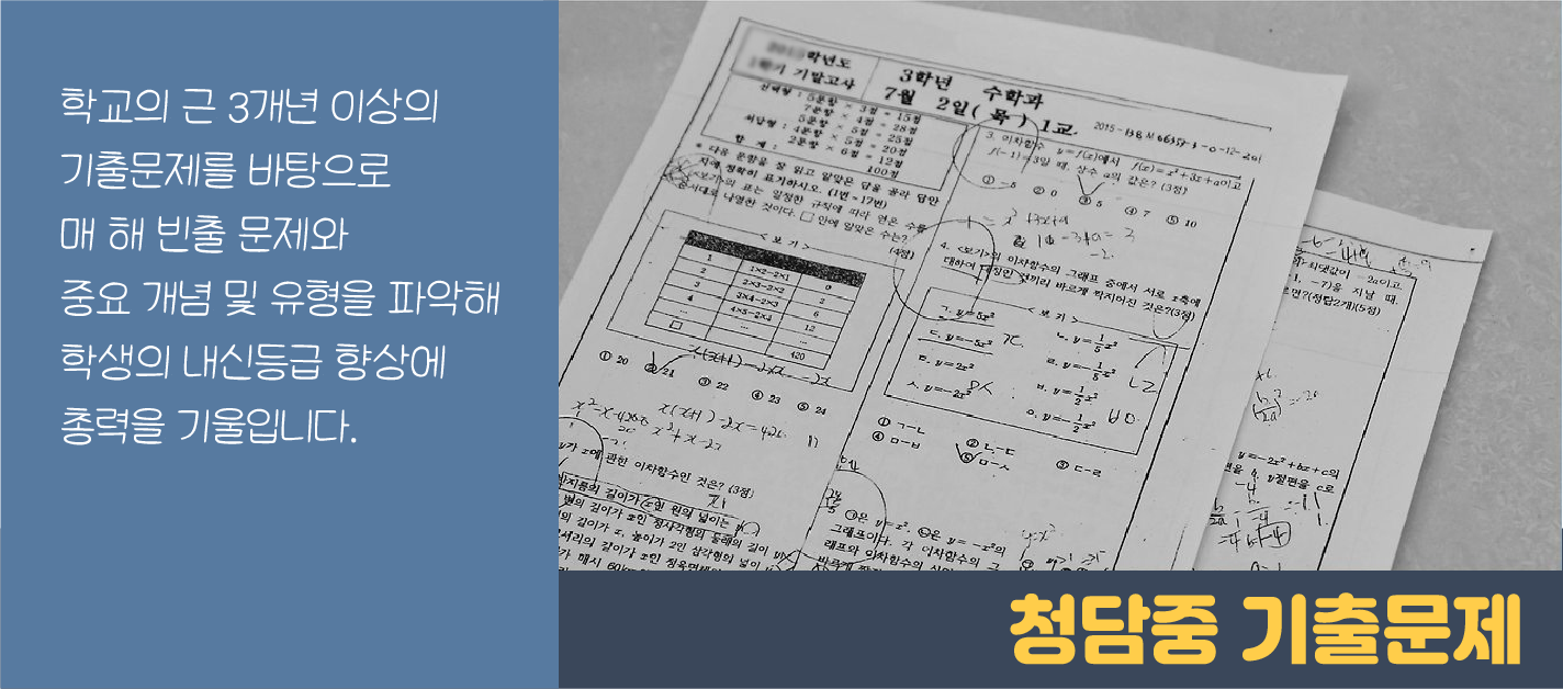 기 때문에 청담중학교의 출제경향을 잘알고 계시는 배테랑선생님과 함께 수학공부를 해야하는 마의 구