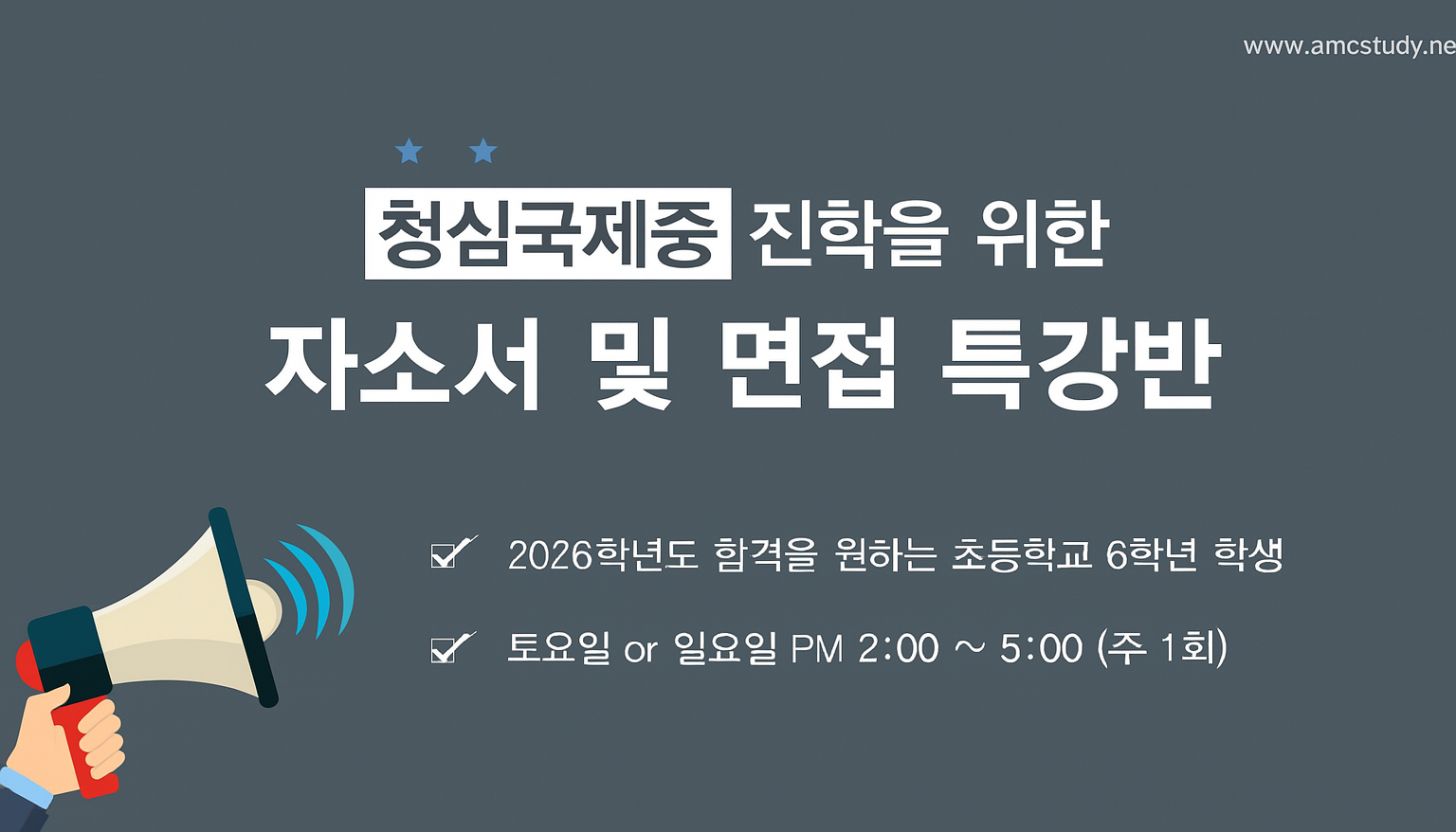 2026 청심국제중 자소서 및 청심국제중학교 최종면접 특강반 안내를 시작해 봅니다.