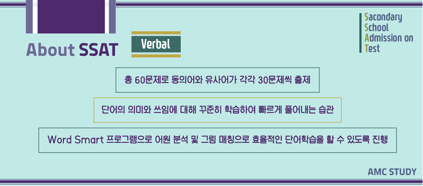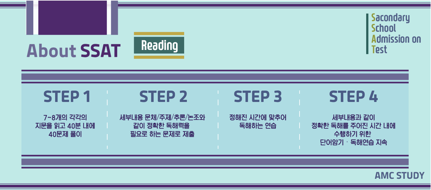 SSAT의 고득점을 위해서는 SSAT Reading, SSAT Verbal를 중점적으로 공부를 하여야 합