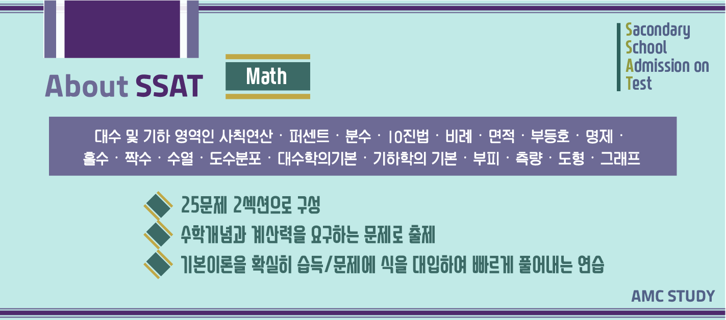 SSAT math에 대해서는 algebra1과 geometry를 기반으로 하여, 자주출제되는 개념의 체계적인