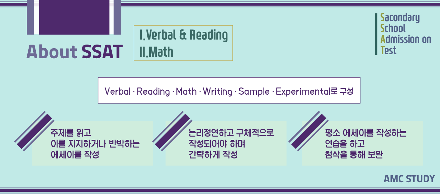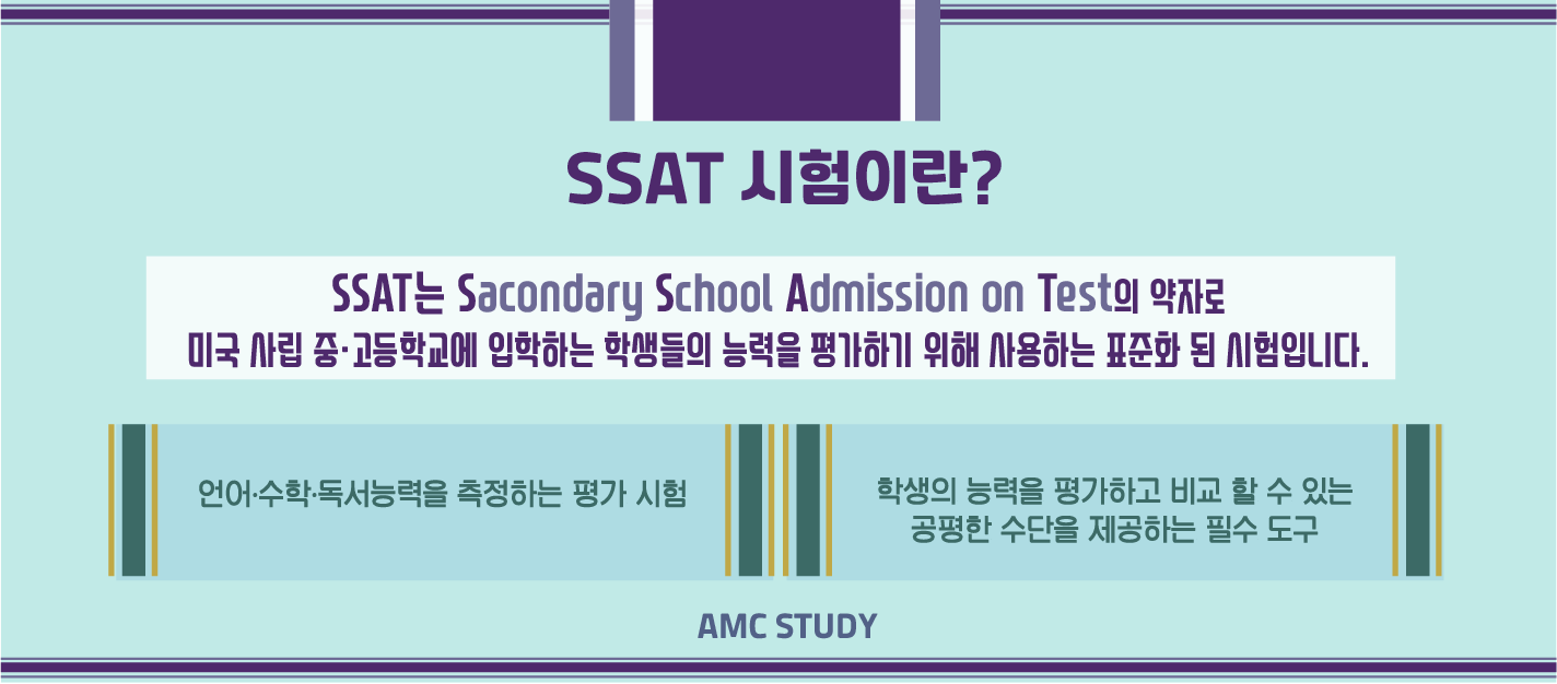 SSAT시험은 일반적으로 미국의 사립 중고등학교에 입학하기 위해서 준비를 하는 시험 입니다