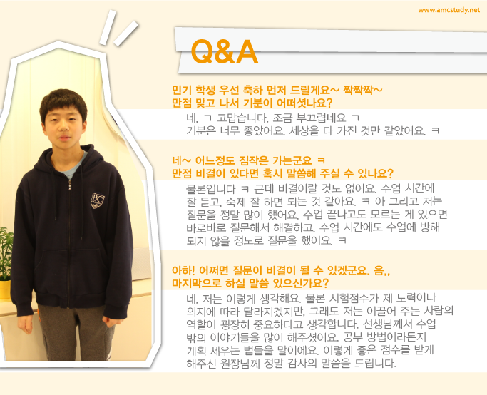 amc8 전세계 1등을 축하합니다. Congraturatiion!!! 다년간의 공부를