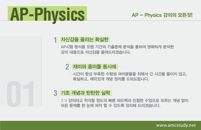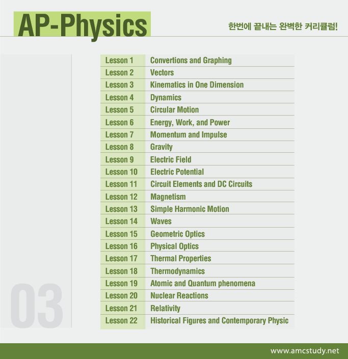 니다.약 2개월에 걸친 물리전체 과정을 통하여 학생여러분들이 Subject Physics와 AP