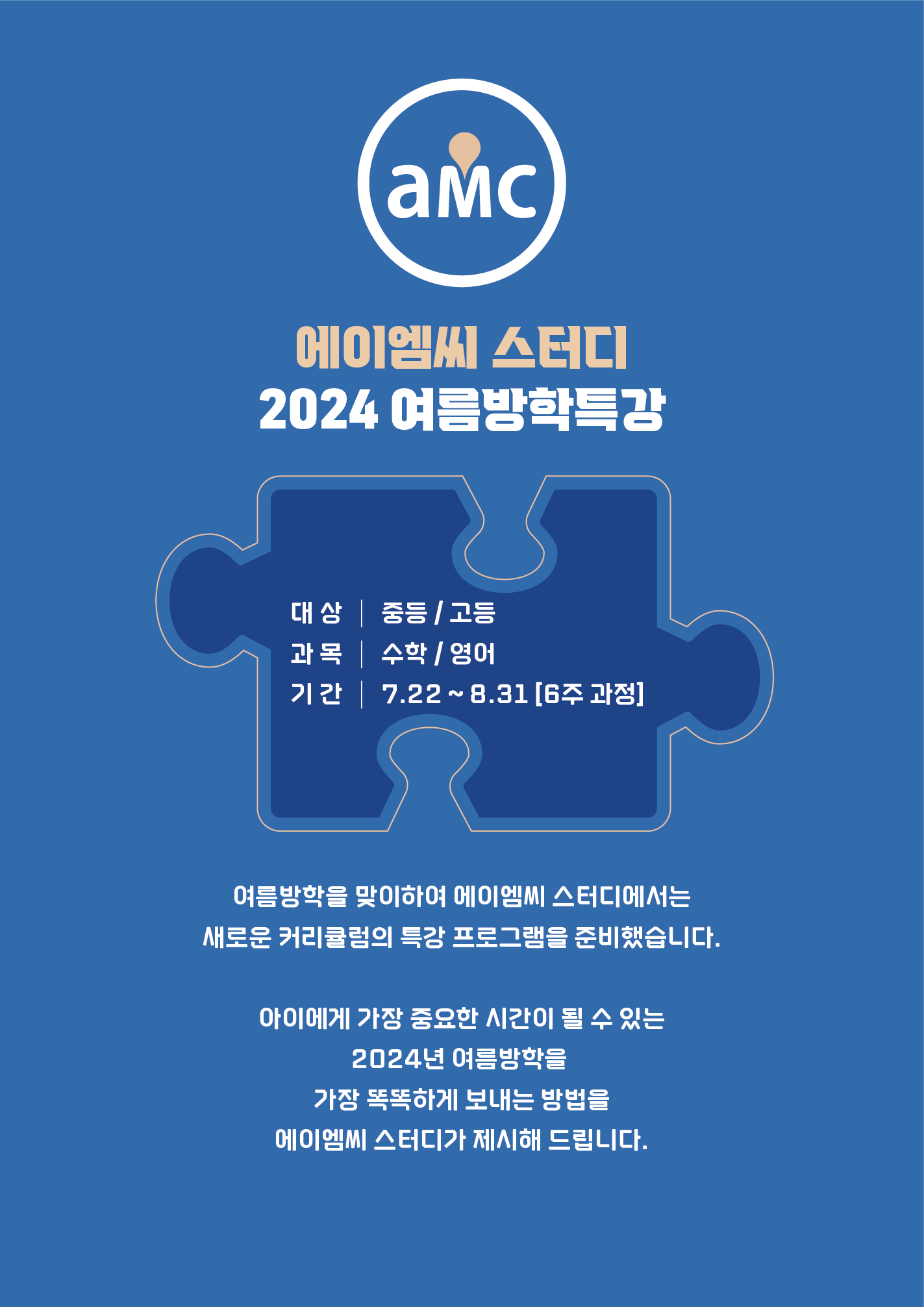 같은 에이엠씨 학원의 여름방학 특강교실을 소개해 드리고자 합니다. 확실하게 공부를 해주어야만 합니다.