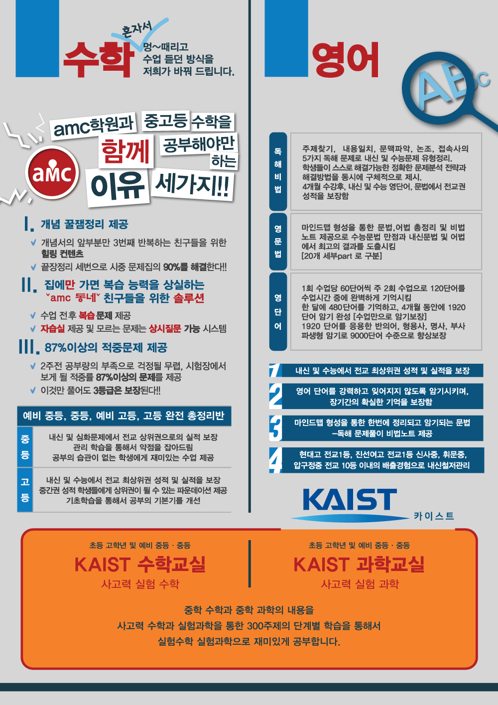 저희 amc학원은 학생들의 내신성적과 자습관리 그리고 학종에 대한
