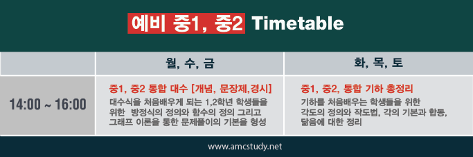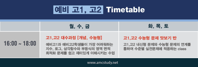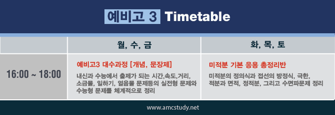 'AMC 자료실 > 국내 (영.수.과) 시간표' 카테고리의 다른 글