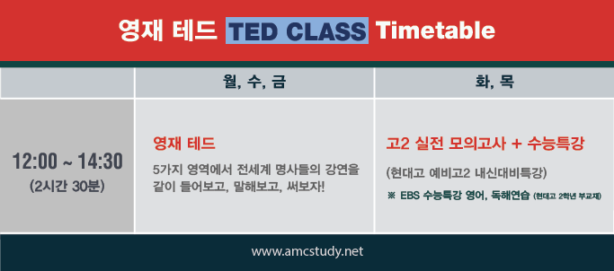 | Ted 듣기 class, 압구정영어, 현대고영어, 압구정겨울방학특강 (0) | 2019.11.21 |