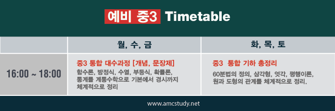 'AMC 자료실 > 국내 (영.수.과) 시간표' 카테고리의 다른 글
