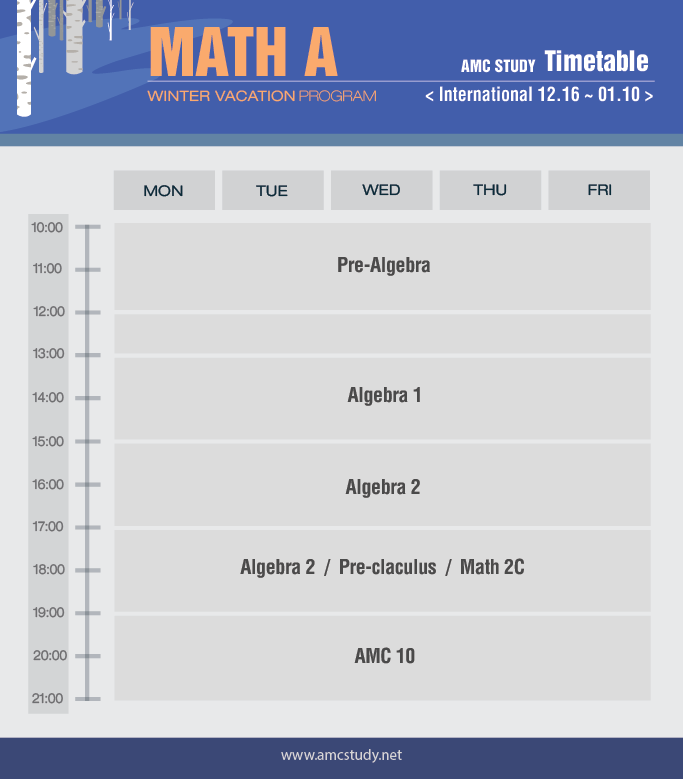 algebra1, algebra2, Pre calculus 그리고 amc8, amc10, amc12도 amcstudy가 함께 합니다.