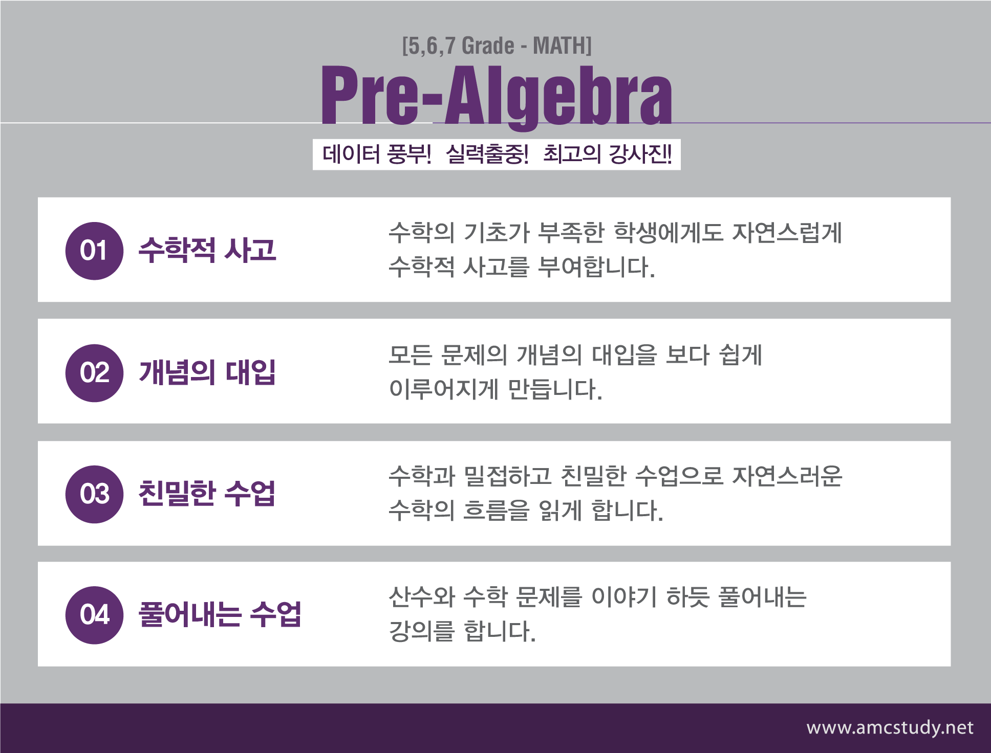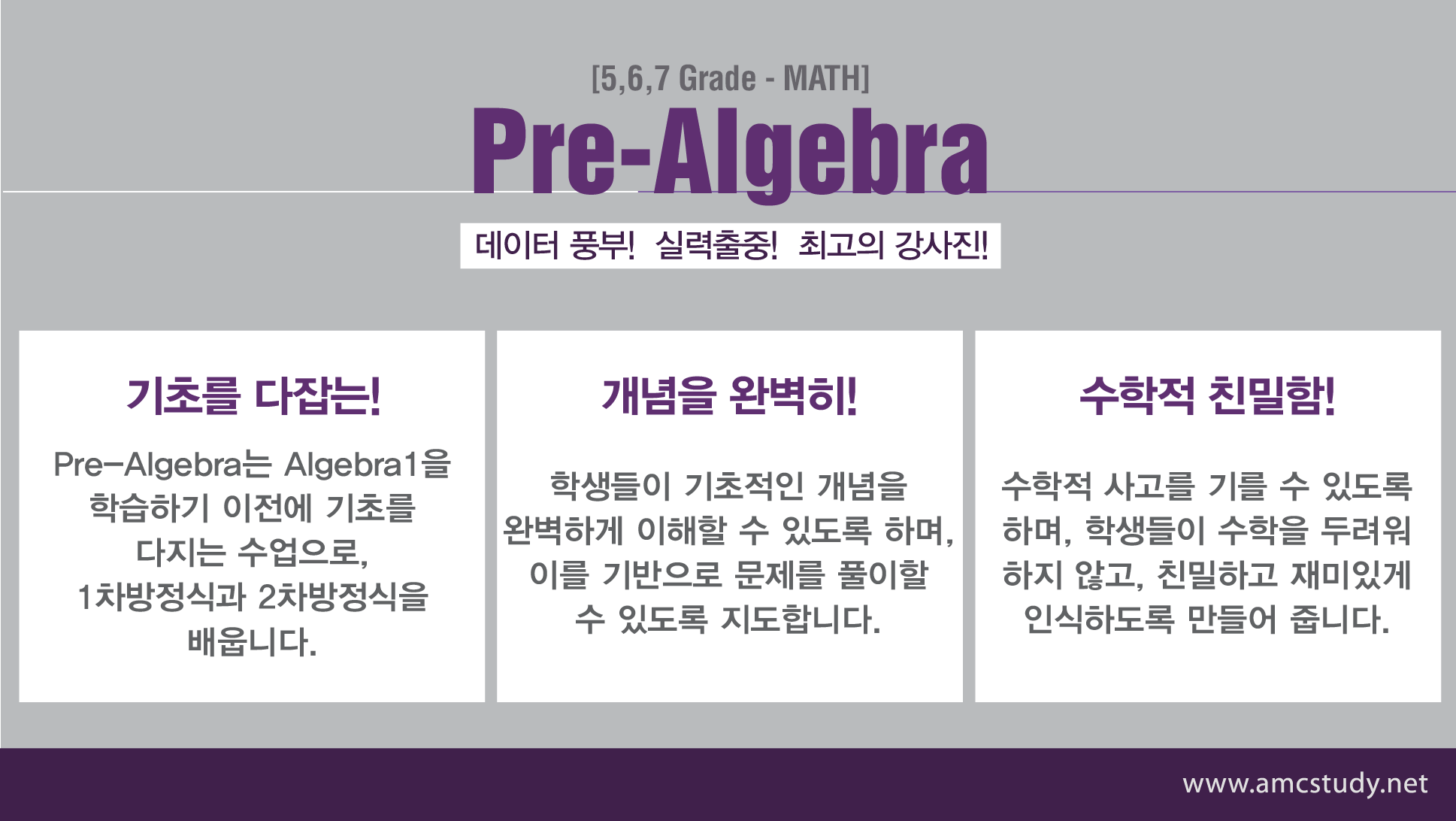 저희 amcstudy에서는 Prealgebra와 algebra1을 처음학습하는 학생들을 위해서