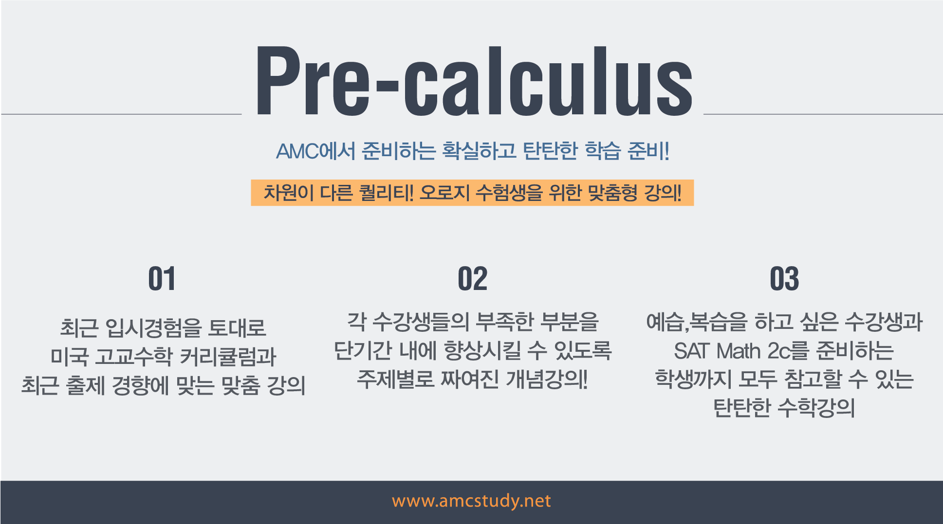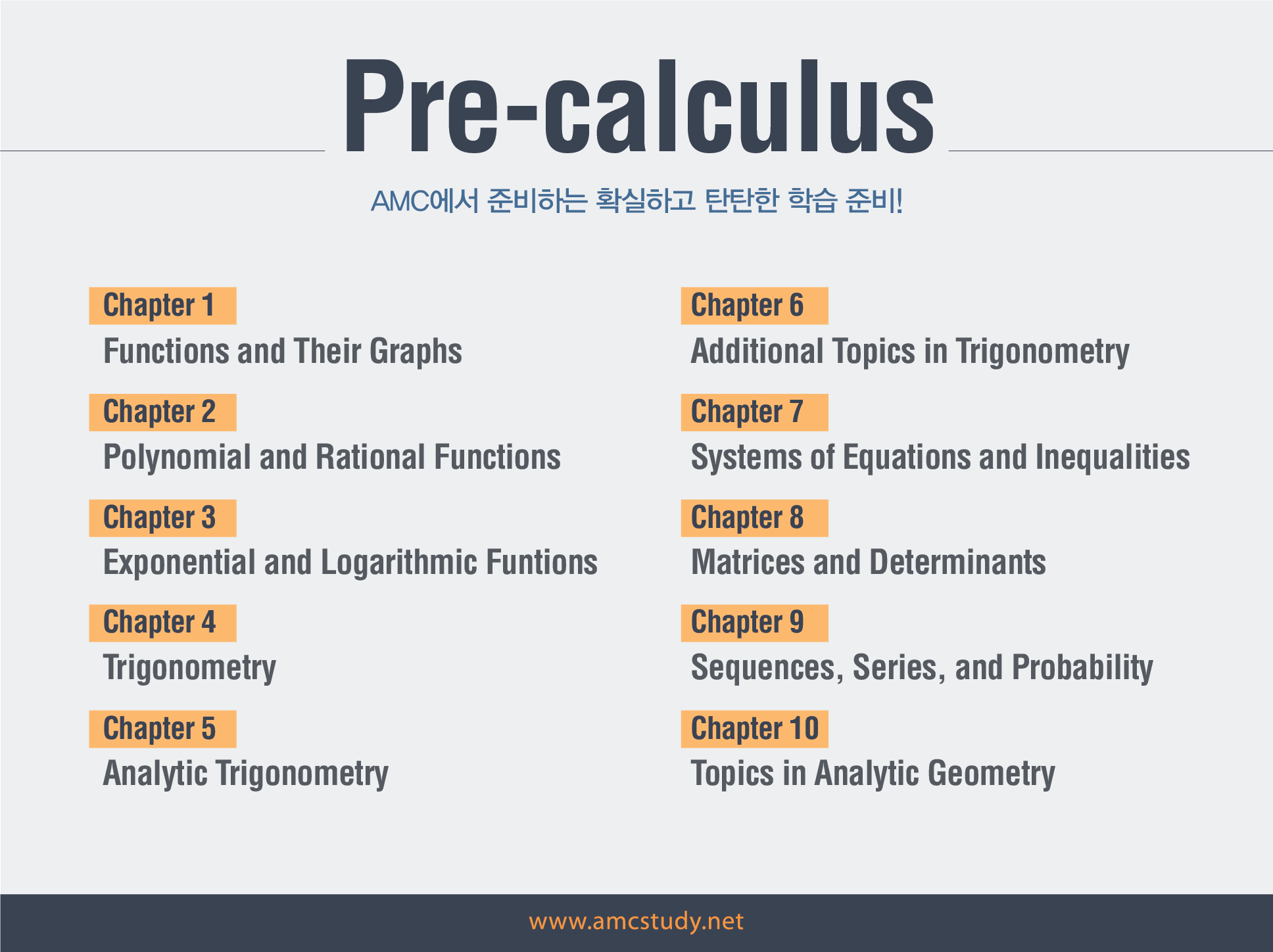 미국수학을 시작한지 대게 2~3년의 시간이 지나게 되면 Precalculus를 통한 Math2c의