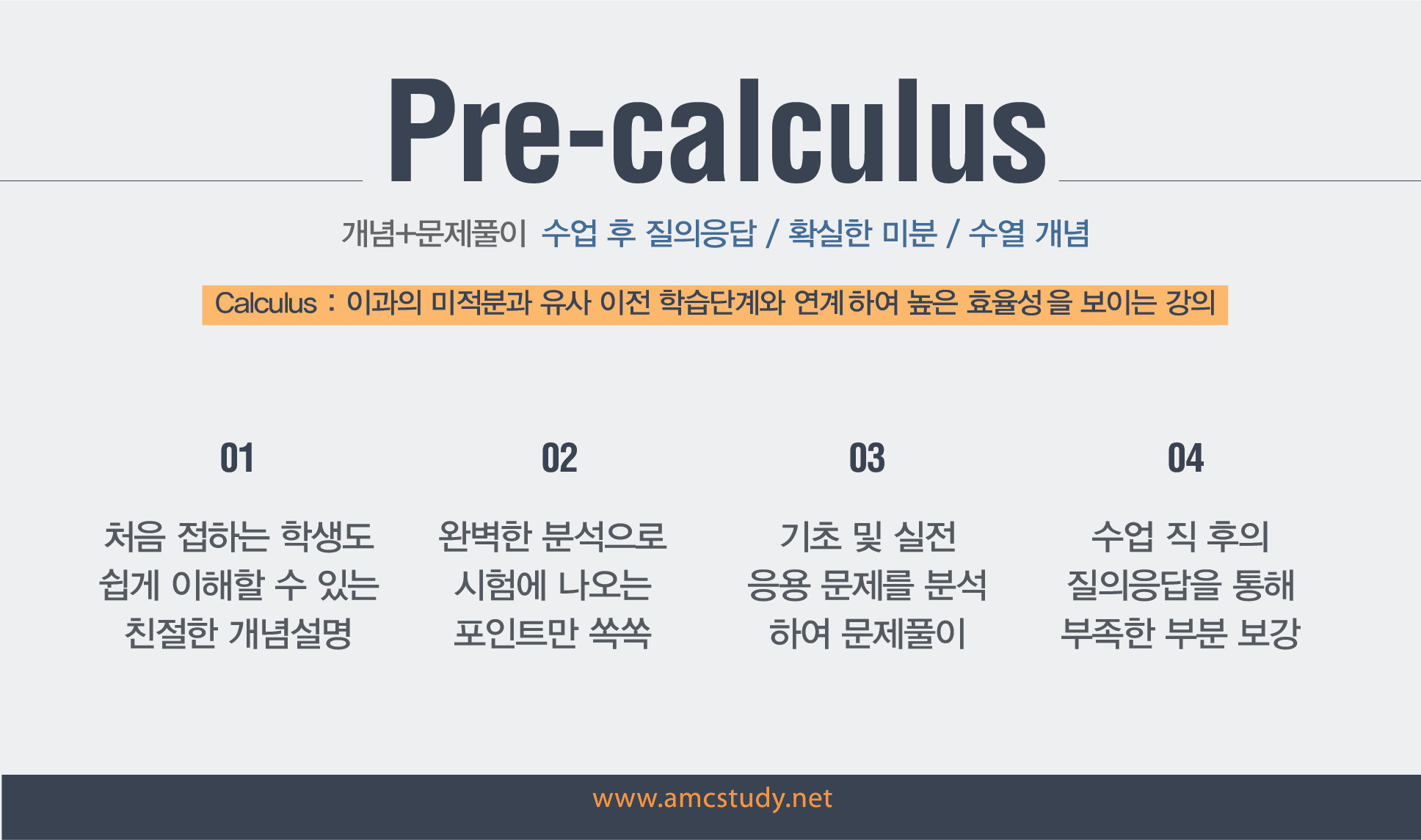 학습의 연계성면에 대한 안정성을 확보하기위해서 Precalculus관련 개념서를