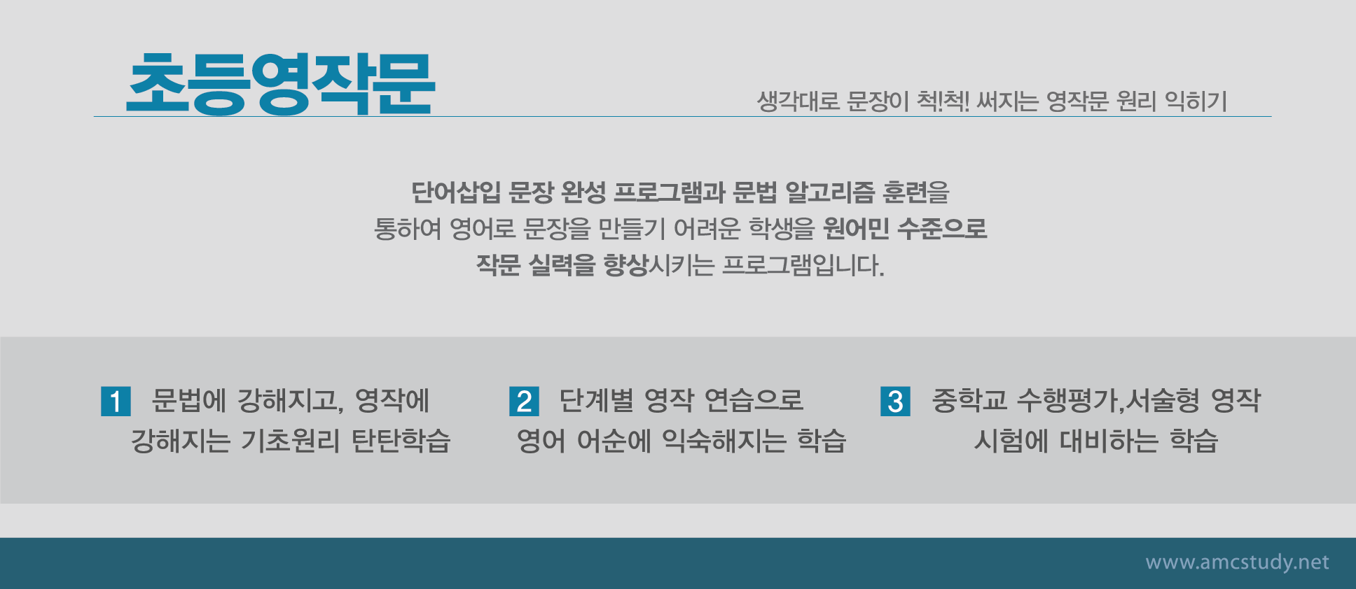 로 요구되는 능력은 영단어의 효과적인 학습과 기억입니다. 저희 amc학원에서는 영작문을 처음공부하는 학생들도