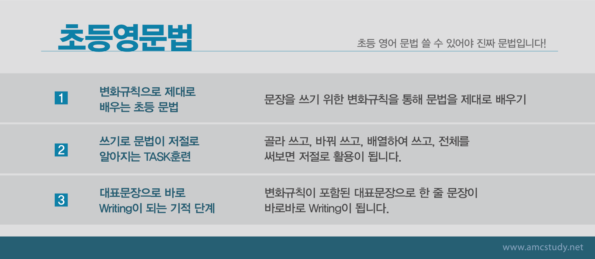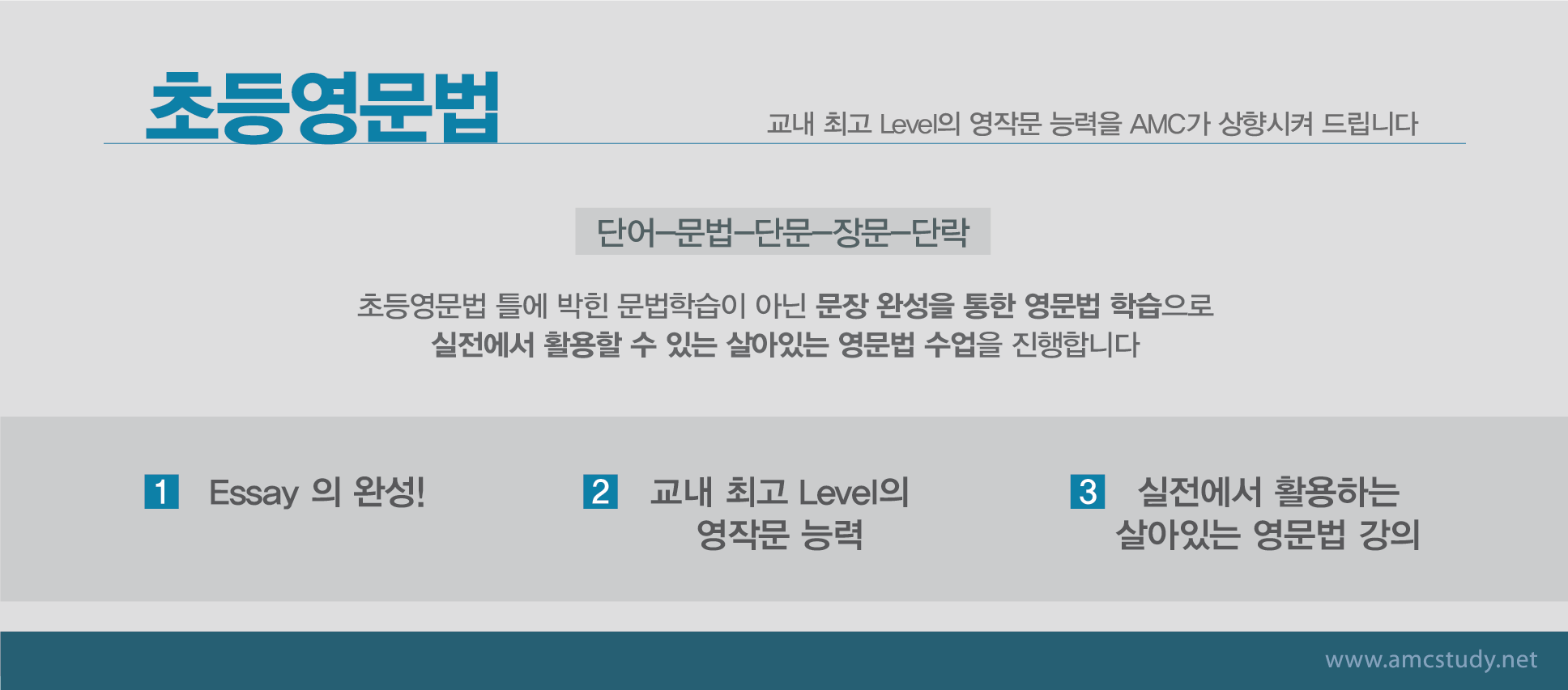로 요구되는 능력은 영단어의 효과적인 학습과 기억입니다. 저희 amc학원에서는 영작문을 처음공부하는 학생들도