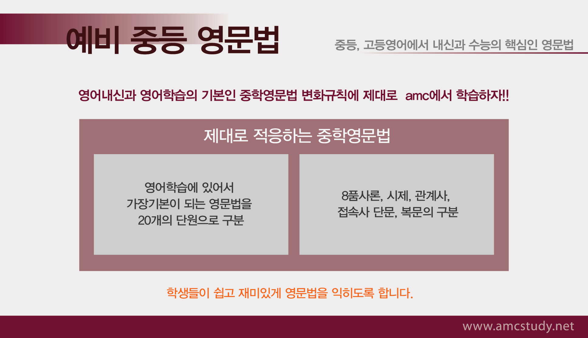 의 학생들 및 학부모님 여러분 ~~ 저는 amc학원의 영어전문가 최샘입니다. 오늘은 예비