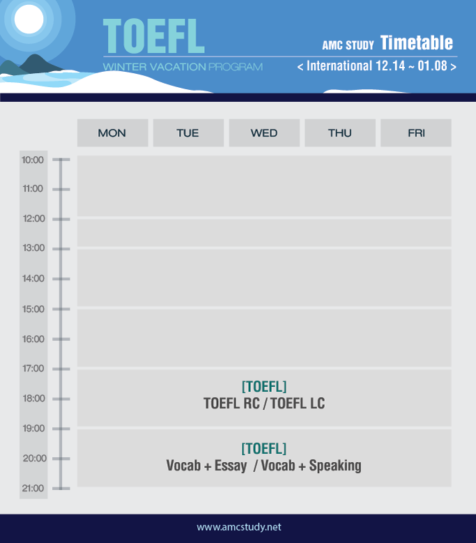 오후시간을 이용하여, Toefl의 공부를 진행하려는 학생들을 위해서