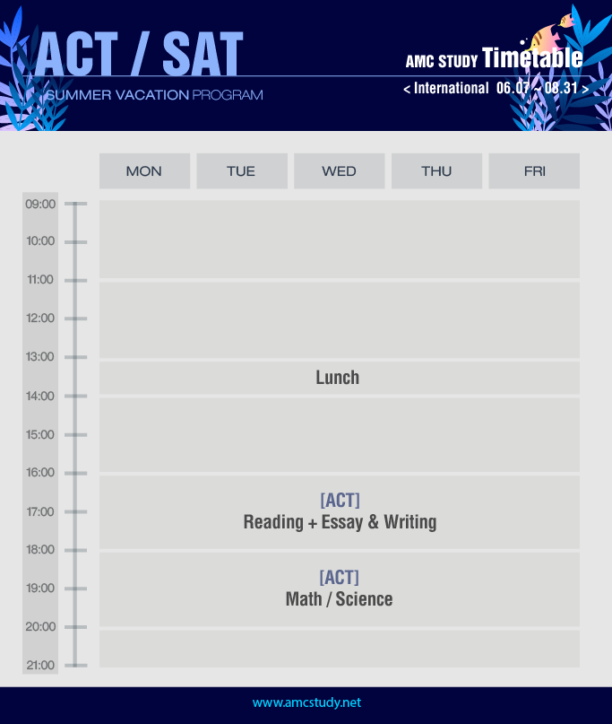 SAT가 아닌 ACT를 통해서 미국대학에 진학을 원하는 학생들을 위해서 주5일의 하루 4시간 수업과