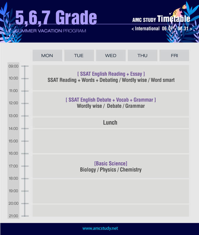 진행되게 됩니다. 대개의 학생들은 오전에 SAT intro class와 SSAT class, English A와 같은 영어