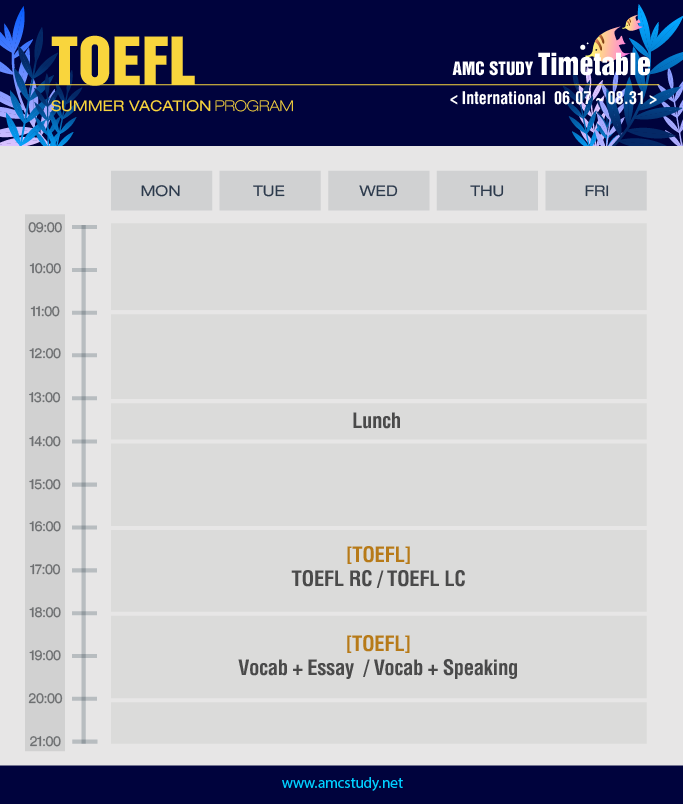 니다. 또한, TOEFL RC와 TOEFL LC의 경우는 오전에 Math와 Science를 공부한 이후 관련 ETS연계