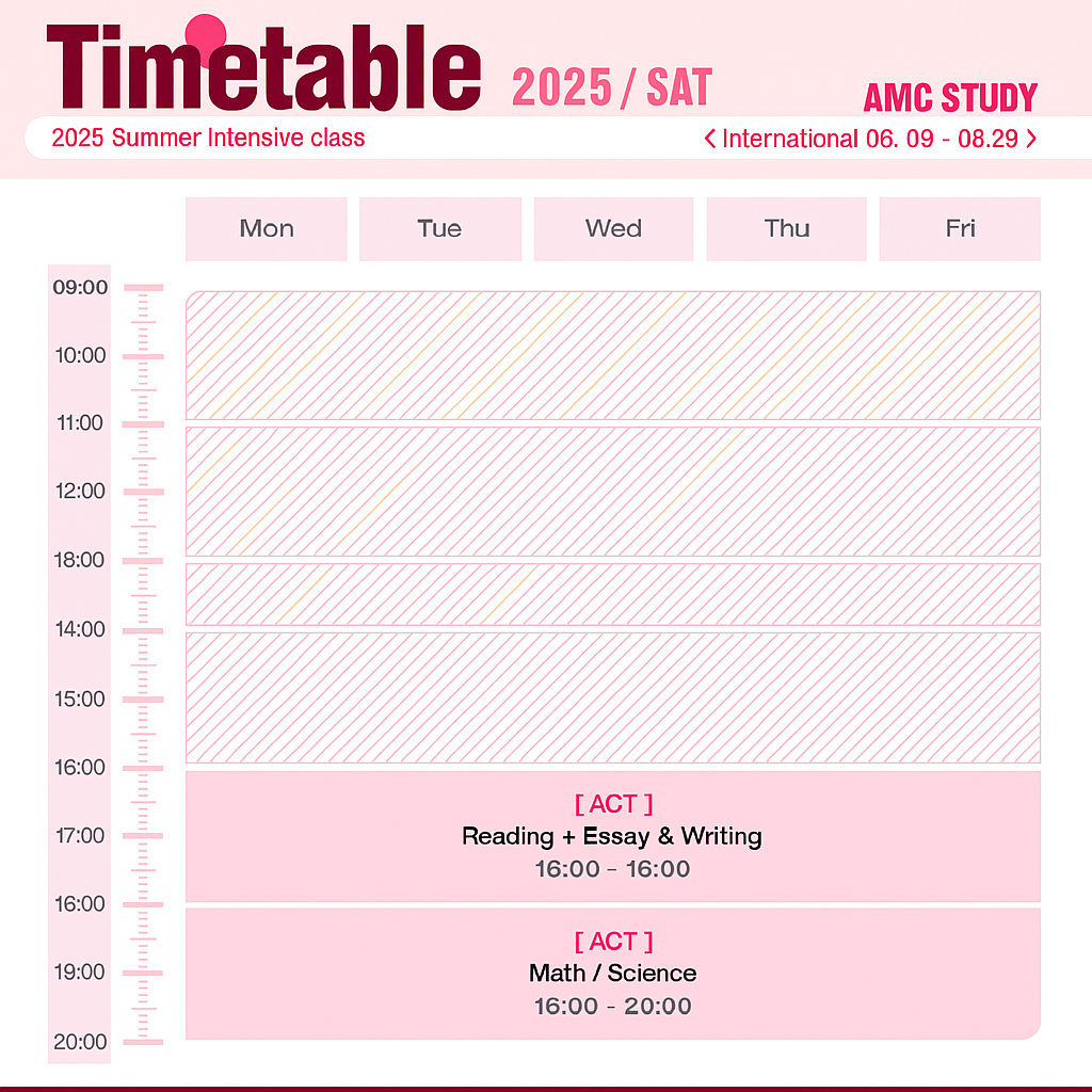 ACT RC, ACT Essay, ACT math, ACT Science를 저녁시간을 통해서 진행하게 됩니다.