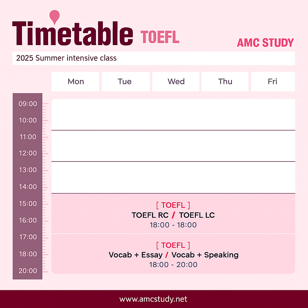 아래는 여름방학 특강에 대한 시간표 이오니 참고해 주시기 바랍니다. 진단평가후 배정합니다
