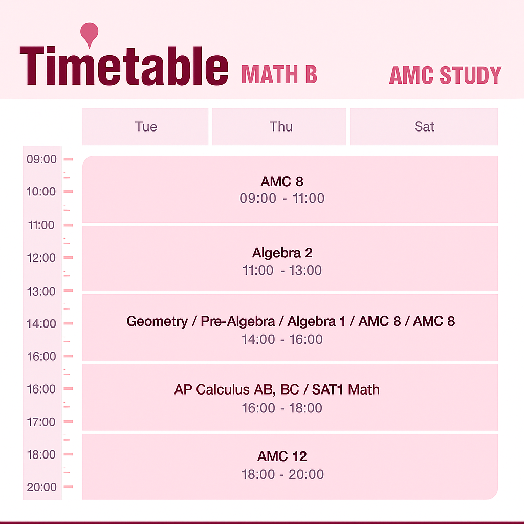 amc8, Geometry, Ap Calculus, amc12, SAT1 math의 경우는 화, 목, 토 일로