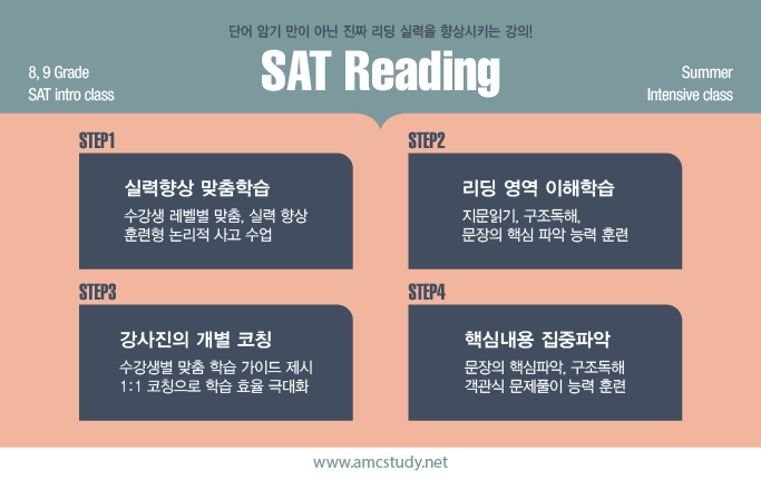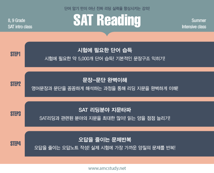 것입니다. 저희 amcstudy에서는 다년간의 SAT강의경험을 기반으로 하여,
