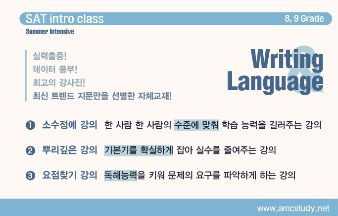 저희와 함께해 주시기 바랍니다. SAT 공부도 amcstudy가 하면 다릅니다.