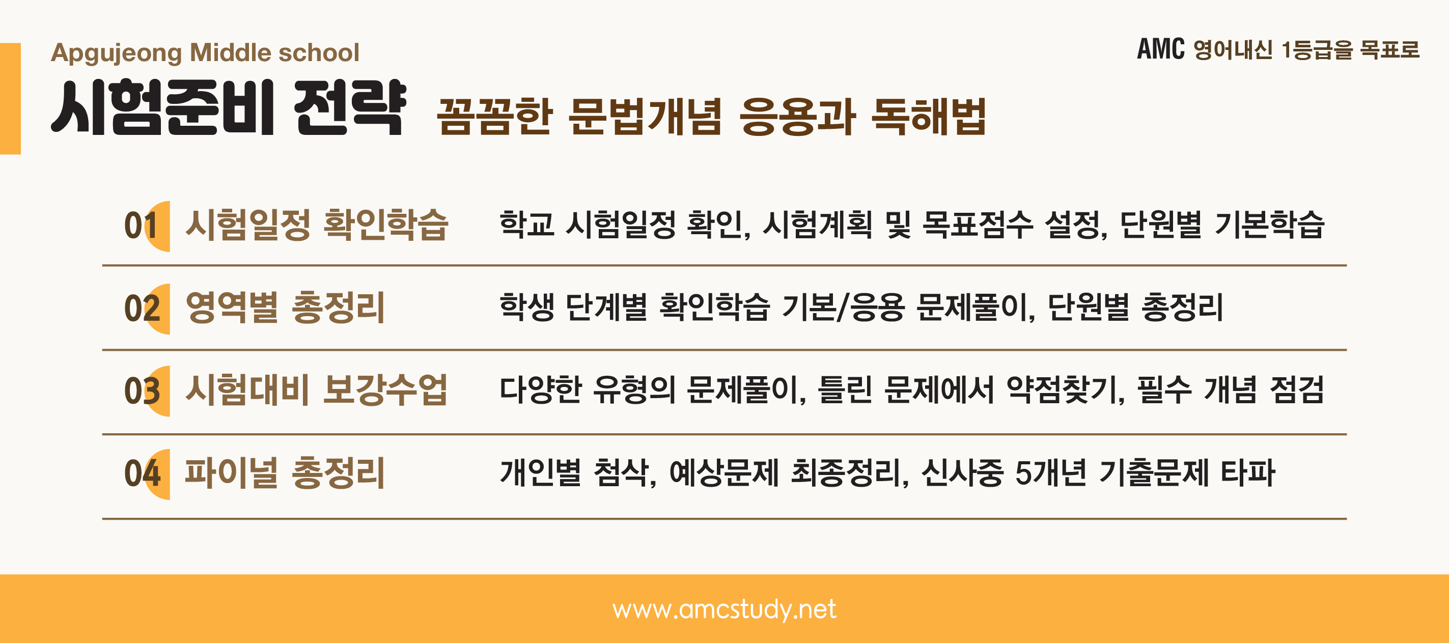 다음과 같습니다. 압구정중학교 영어내신성적의 확실한 향상을 위해서