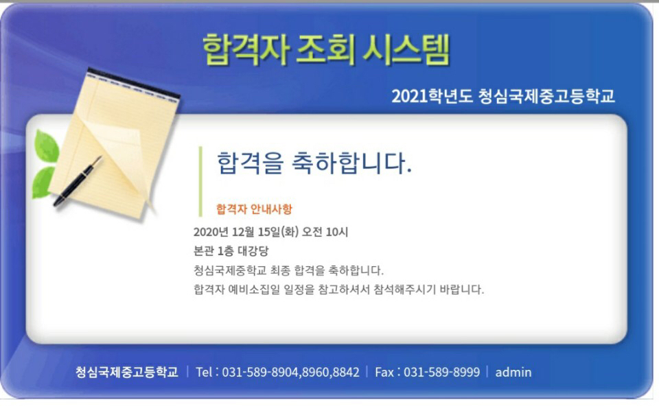 청심국제중 입학시험을 준비하는 예비 청심국제중 학생여러분 및 학부모님 여러분 안녕하십니까?