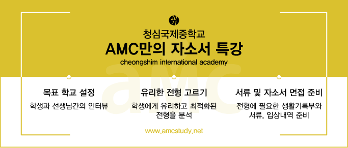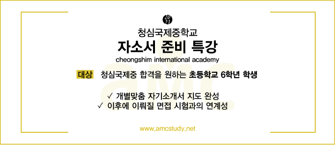 청심자소서와 청심입학시험준비 및 청심국제중 면접을 위한 최선의 선택 저희 amcstudy와 함께