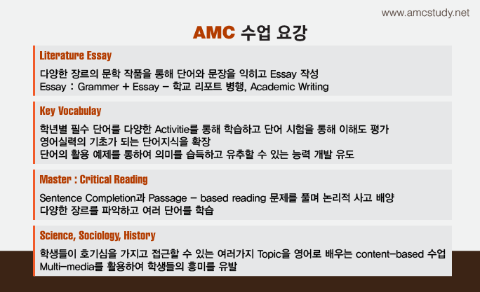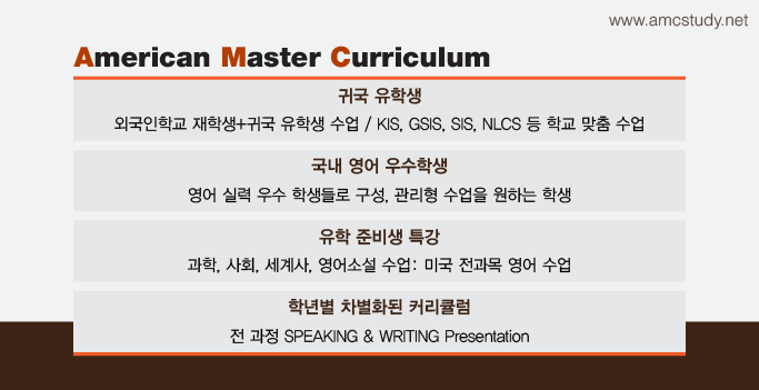 저희 amcstudy에서는 10년이상의 유학생 특강반과 귀국유학생 특강반을