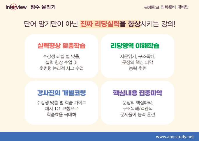 국제학교영어준비반, 국제학교입학준비반, 유학준비반, 귀국학생영어특강