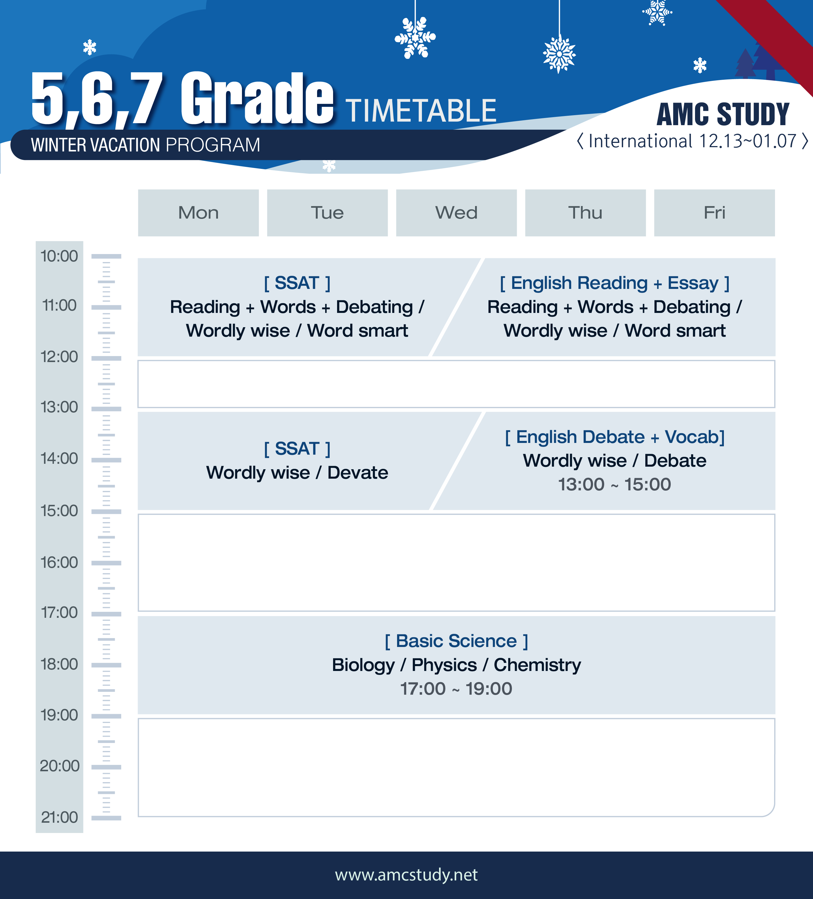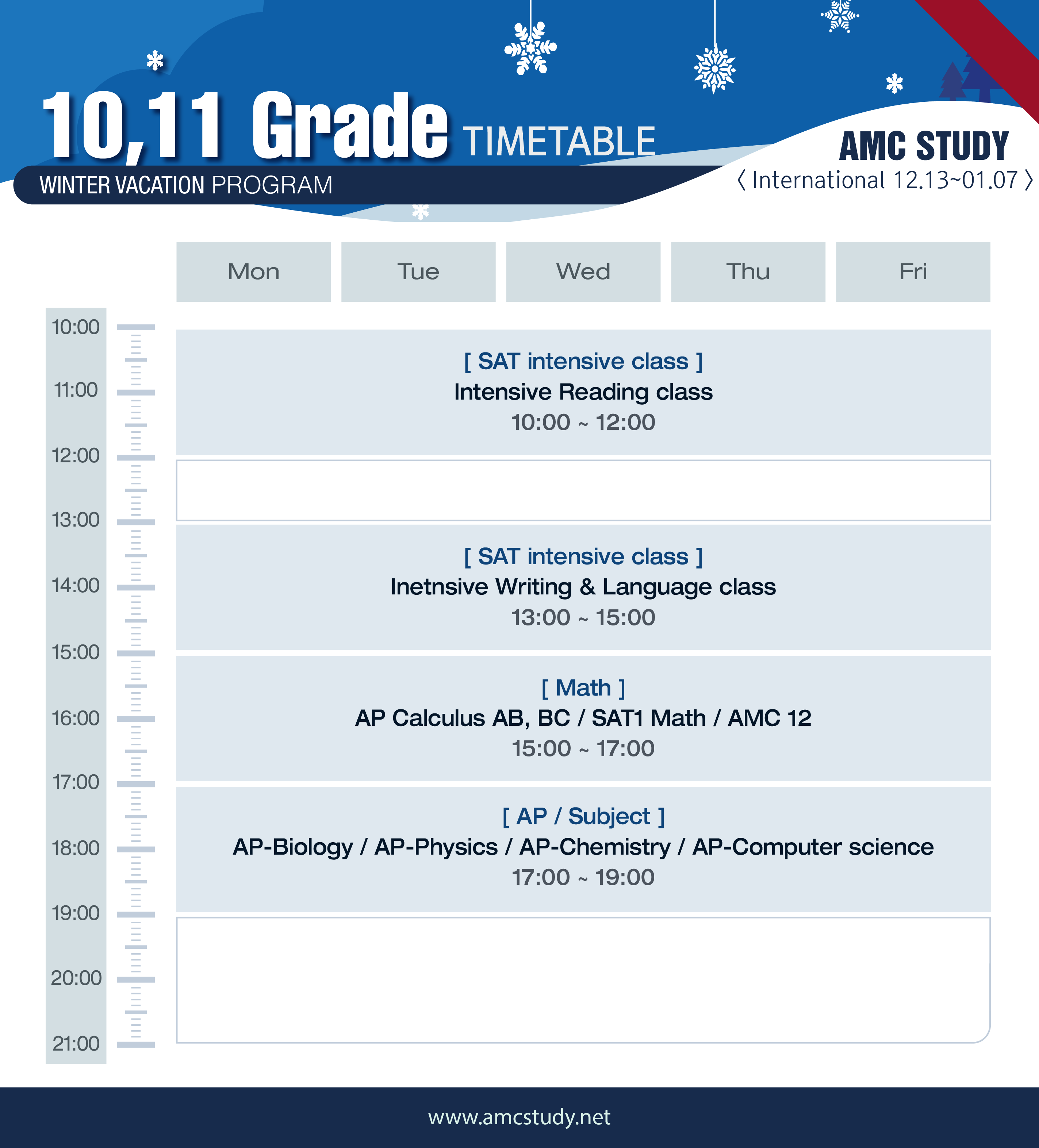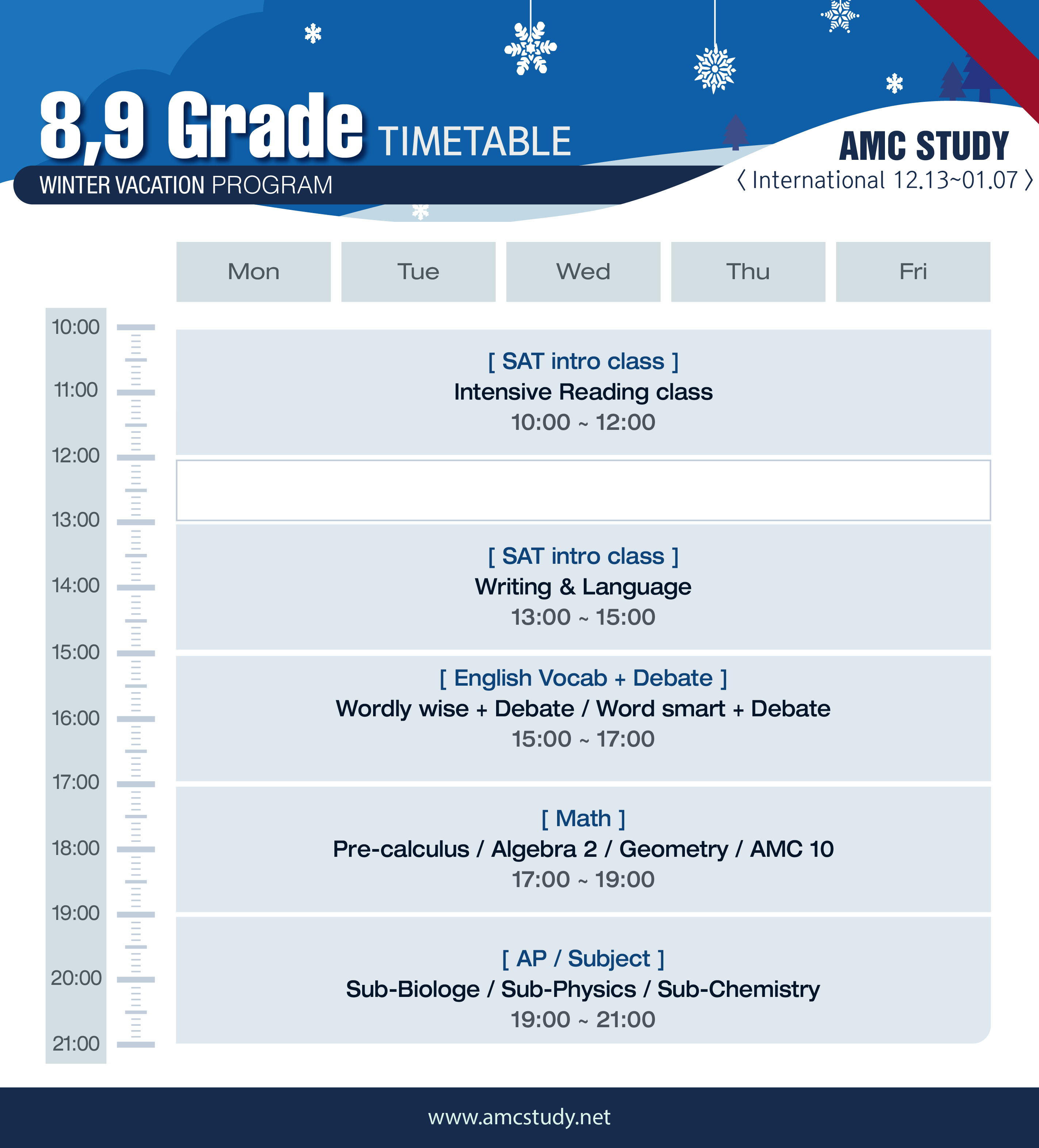 저희는 학생여러분께서 이번 겨울방학을 맞이하여 SSAT, SAT, Algebra, Geometry,