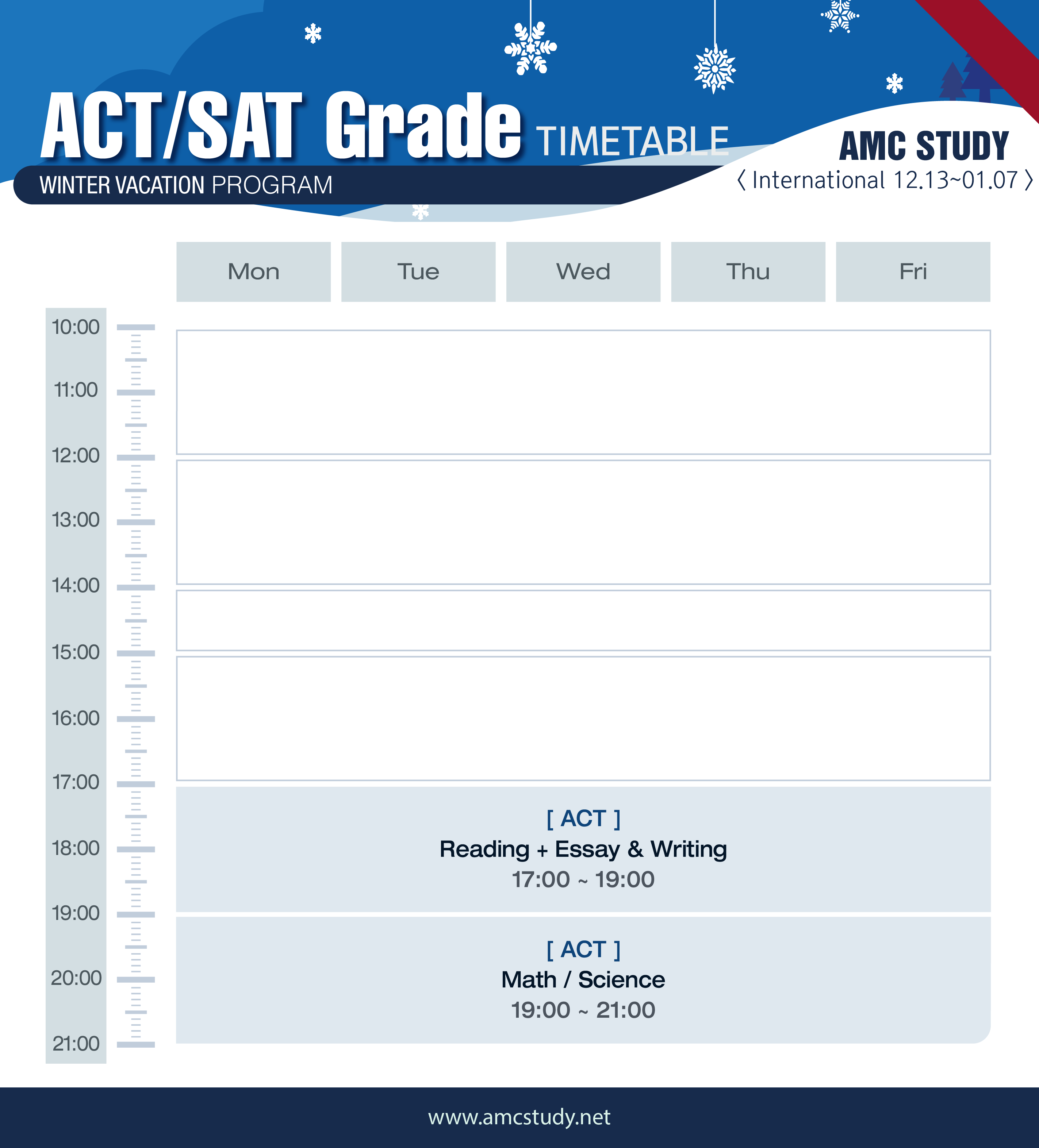 있어서 가장 중요한 포인트가 되기 때문입니다. 또한, ACT Science, math도 함께 진행하게 됩니다.