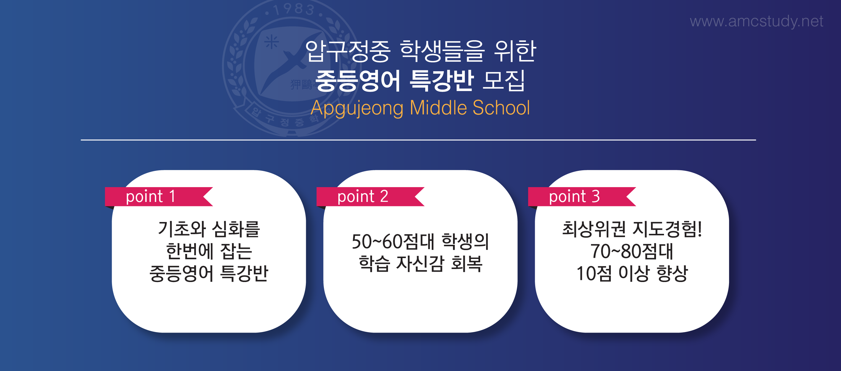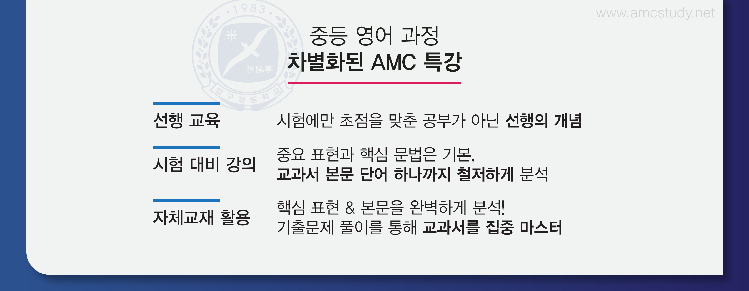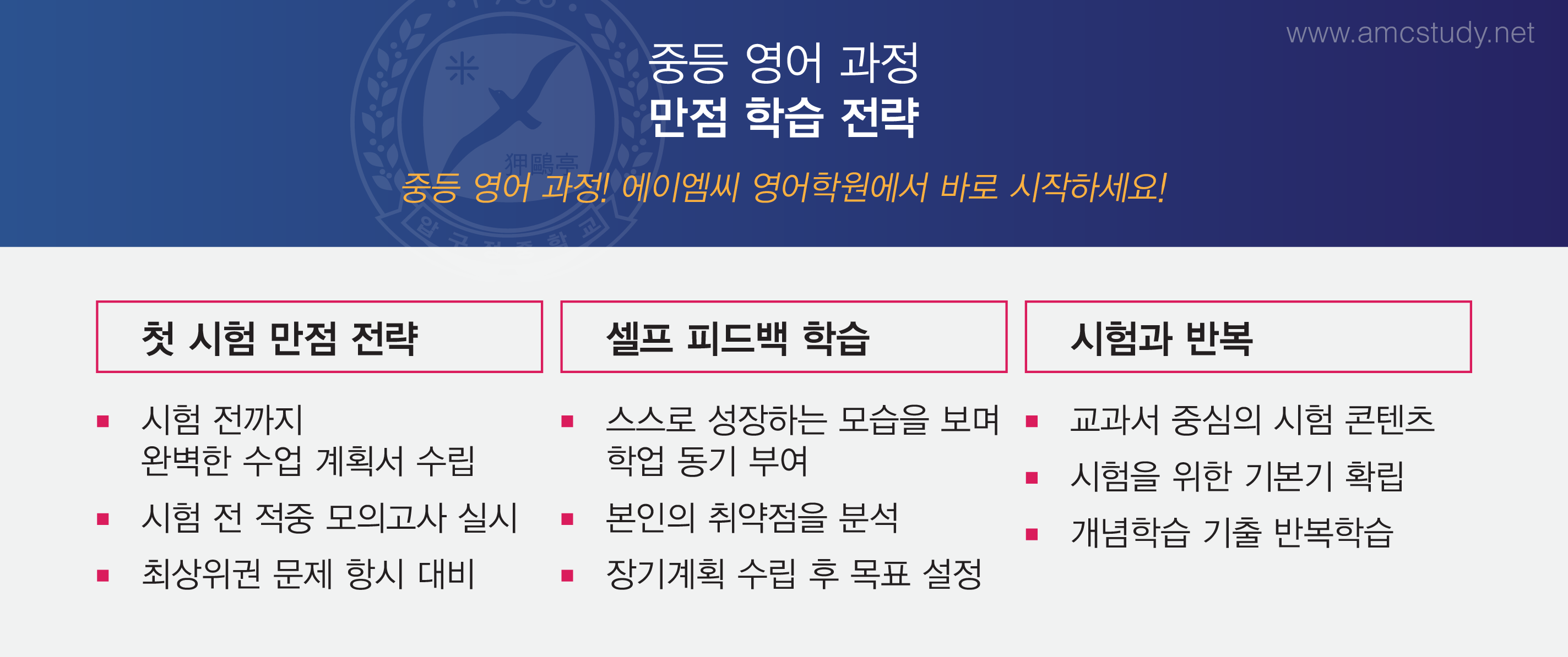 중등영어과정과 주말 관리학습과 자습 관리를 통하여 실질적 실력향상을 통한 영어성적의
