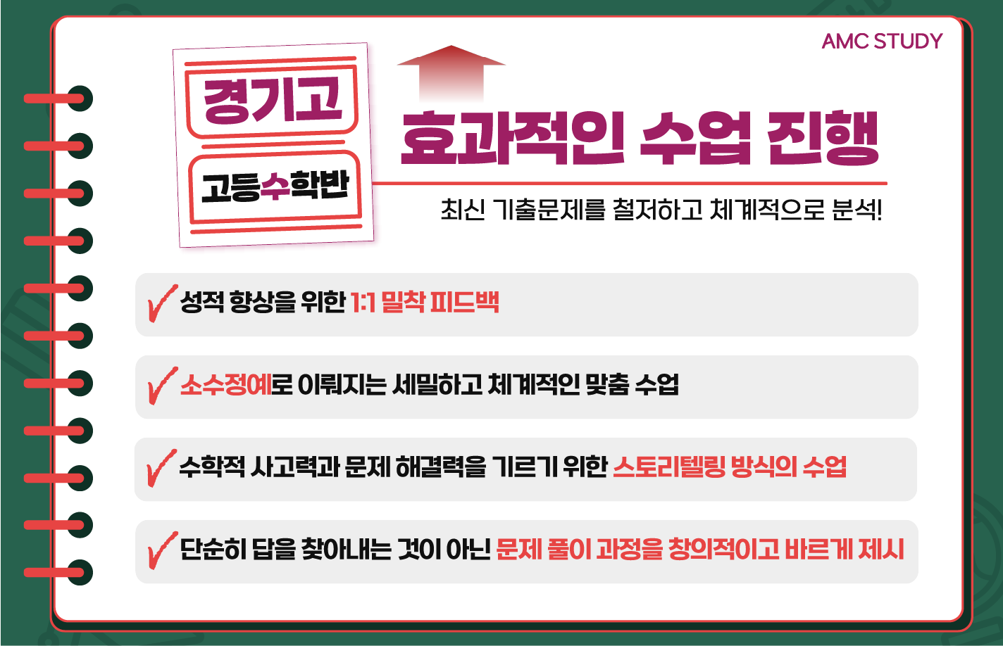 통하여 확실한 지원하겠습니다. 경기고학생들의 수학 성적을 한 단계 한 단계 더 높여드립니다.
