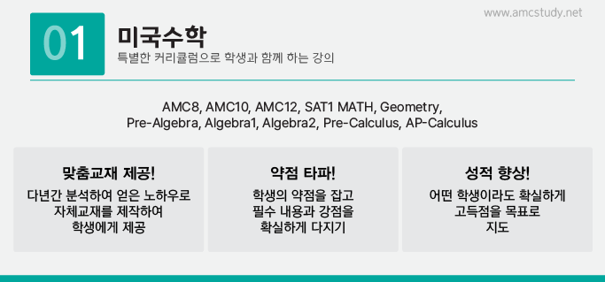 다. 그간 저희 원의 math와 English 커리큘럼에 대한 안정화로 인하여 학생 여러분들로 부터 신뢰할 수 있는 amc